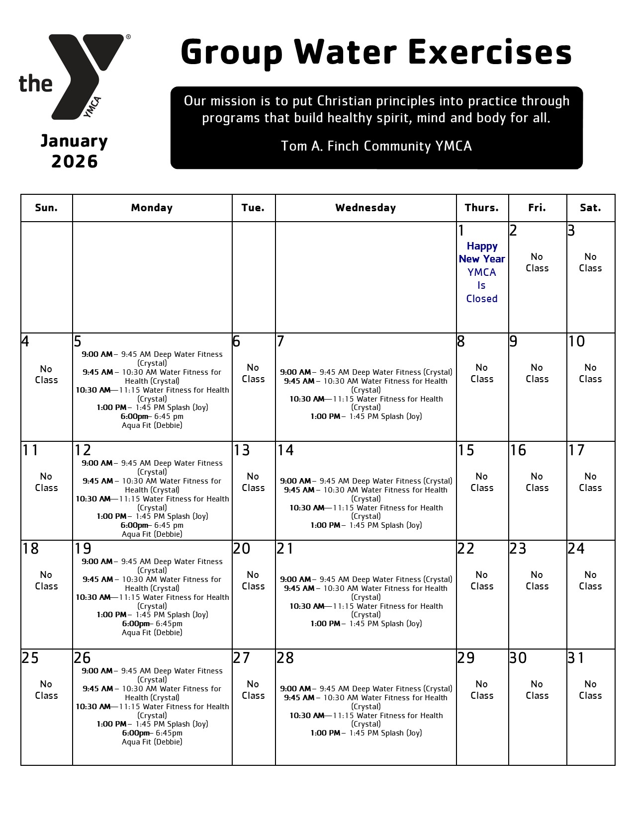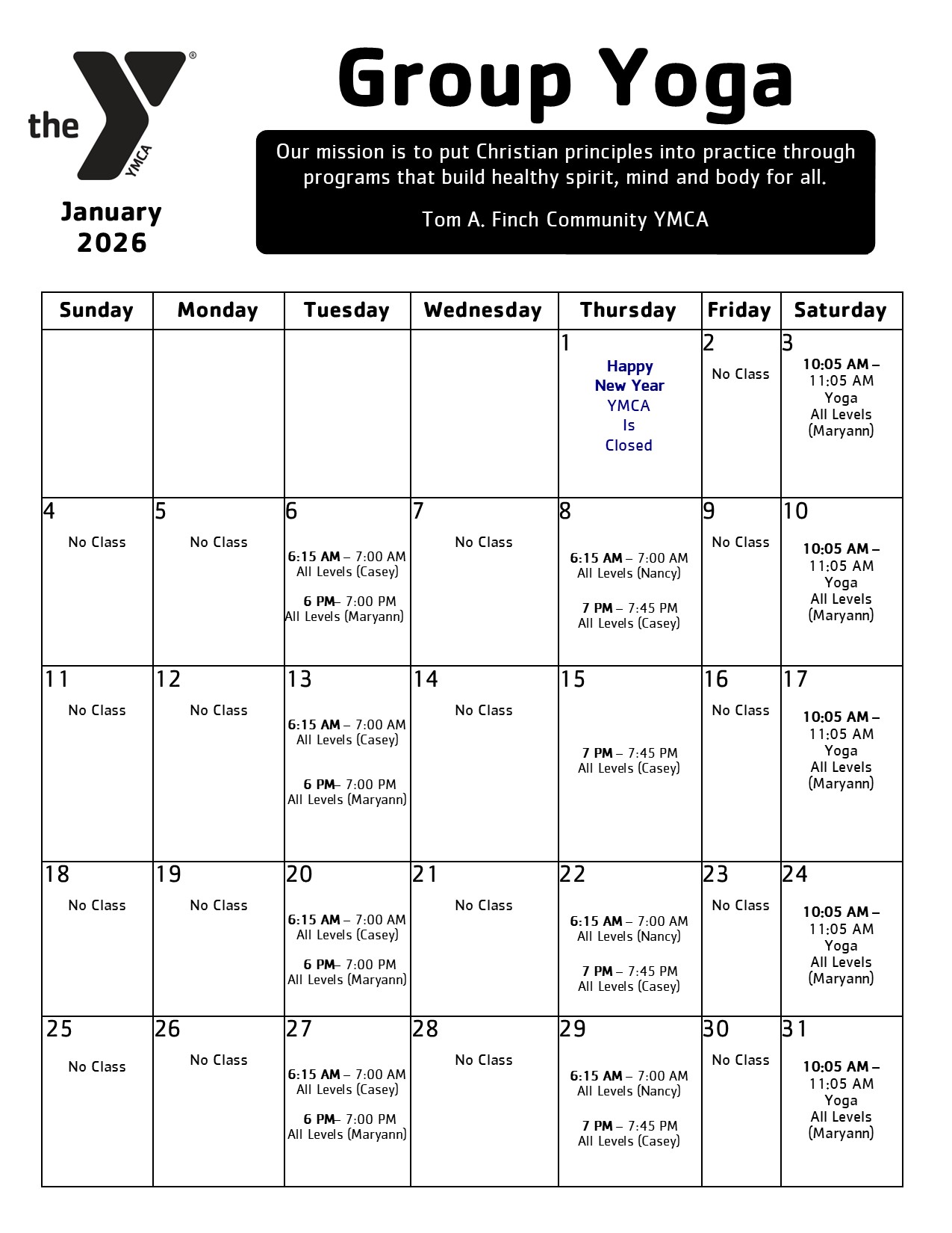 Cost: $50 for Tom A. Finch Community YMCA Members | $85 for Non-Members